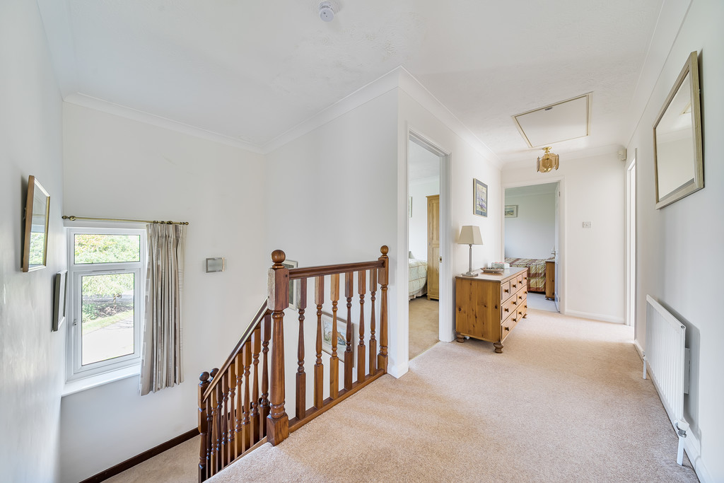 DESCRIPTION A substantial five bedroom family home occupying this highly regarded cul-de-sac, approximately 3/4 mile from the village centre backing onto open fields to the rear. Internally, the property extends to 2318 sqft offering versatile accommodation comprising: superb triple aspect first floor sitting room with vaulted ceiling and door leading onto large roof terrace, ground floor dining room, ground floor reception, ground floor bedroom/study, kitchen/breakfast room, three first floor double bedrooms with en-suite to main bedroom and a family bathroom. Outside, there is extensive parking to the front leading to an attached double garage and the rear garden is a feature of the property with a westerly aspect.
