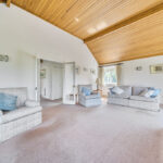 FEATURE TRIPLE ASPECT SITTING ROOM 22' 9" x 14' 3" (6.93m x 4.34m) Open fireplace with brick surround, vaulted pine ceiling, two radiators, sliding double glazed door leading to: