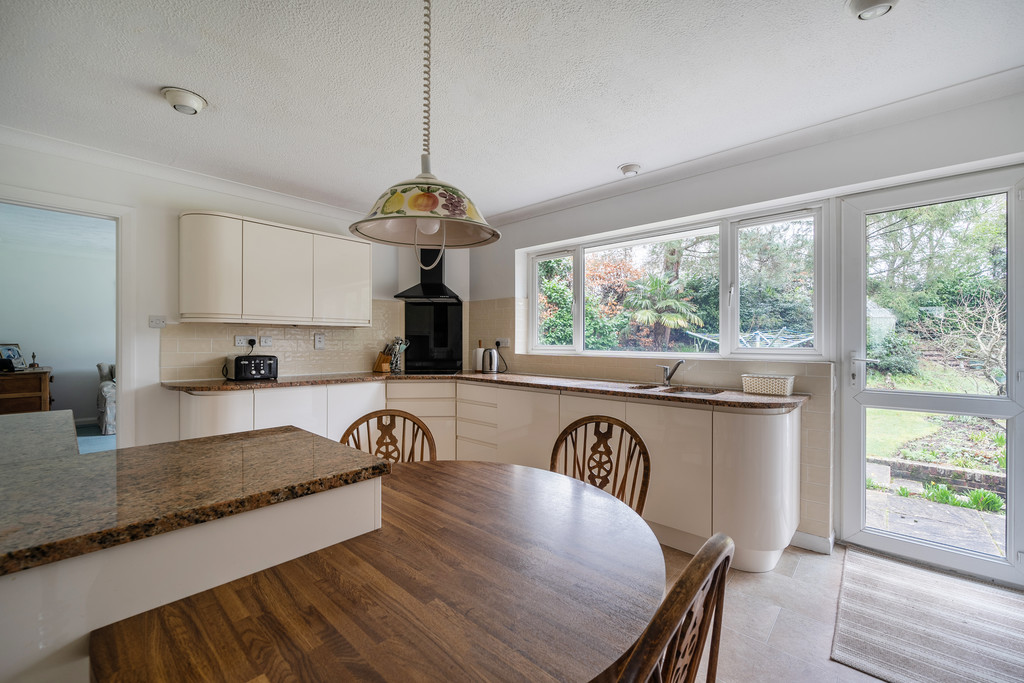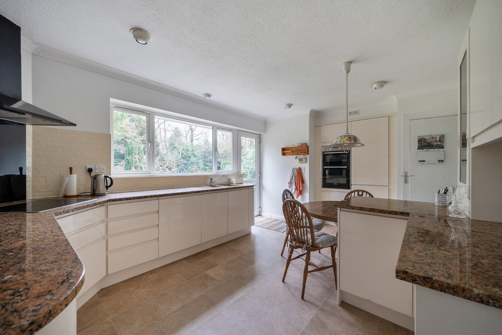 DESCRIPTION An individual split-level home arranged over three floors occupying this generous plot of 0.7 of an acre, set within this highly regarded private leafy lane. The property sits within an elevated position and offers versatile accommodation which incorporates a lower level arrangement suitable for independent relatives. Overall, the accommodation extends to 2565sqft comprising: generous reception hall, sitting room with sliding doors leading to west aspect balcony terrace offering views towards the South Downs, dining room, kitchen/breakfast room, three first floor bedrooms, two en-suite bathrooms and a family bathroom. Outside, there is a private driveway leading to extensive parking and detached garage set within well kept landscaped gardens offering a high degree of privacy.