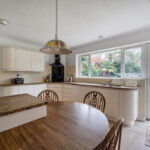KITCHEN/BREAKFAST ROOM 14' 4" x 11' 7" (4.37m x 3.53m) Range of wall and base units, range of granite working surfaces with groove drainer and one and a half bowl sink with mixer tap, inset four ring 'Siemens' hob with extractor over, integrated 'Siemens' fan assisted electric oven and separate grill, integrated fridge/freezer, further eye-level cupboard with crockery display unit and working surface with peninsula wood block circular breakfast bar, radiator, tiled flooring, double glazed windows overlooking rear garden, door to the rear garden.