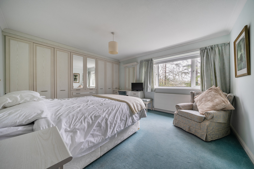 MASTER BEDROOM 15' 3" x 12' 6" (4.65m x 3.81m) Range of floor to ceiling built-in wardrobe cupboards, radiator, double glazed windows with delightful outlook, door to: