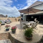 FRONT GARDEN Gateway leading to tiered Astro turf sections of gardens with steps up to feature west aspect decked area offering a perfect evening sun trap with further side paved courtyard section of garden.
