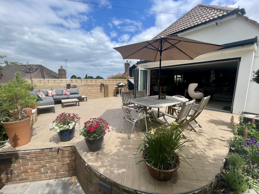 DESCRIPTION An individual detached five bedroom home located within this highly regarded road close to the village centre. Internally, the property has been subject to extensive modernisation to a high standard with accommodation comprises: superb open plan lounge/kitchen/dining room with a range of integrated appliances, granite working surfaces including central island, with oak flooring and bi-folding doors giving a continuous path onto the decked area, ground floor bedroom with en-suite, study, first floor master bedroom with potential for en-suite and re-fitted family shower room. Outside, the garden has been skilfully landscaped taking full advantage of the westerly aspect, with off-road parking for two vehicles leading to a detached garage.