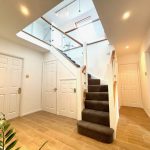 FIRST FLOOR LANDING Glass and oak balustrade, Velux window, walk-in eaves storage cupboard.
