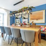 KITCHEN AREA Walk-in storage cupboard, built-in shelving, granite working surfaces, wall-mounted 'Worcester' boiler, inset one and a half bowl single drainer sink unit with granite working surfaces with boiling water and chilled water tap, integrated 'Lamorna' dishwasher, feature central island with under-seating and further extensive storage area and built-in cupboards, granite working surfaces, 'AEG' Induction hob with pop-up extractor, concealed spot lighting.
